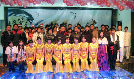 在《难忘今宵》的歌声中晚会圆满结束,学院领导与全体演员和工作人员合影留念。
