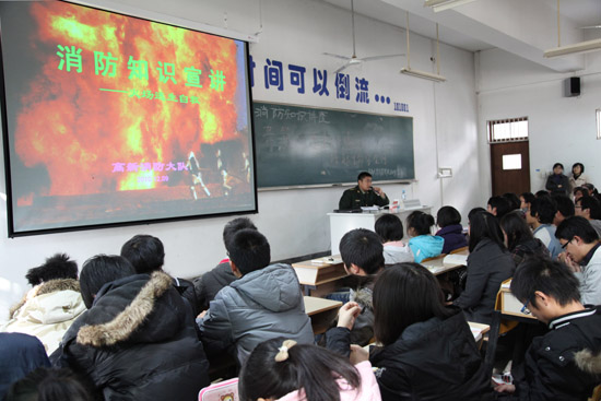 12月9日,我院经济管理系、保卫办邀请南京市高新区消防中队共同举办了以“共筑心中防火墙,搭起生命安全网”为主题的消防知识进校园活动。丹田物业协办、09级物流1团支部承办了此次活动。