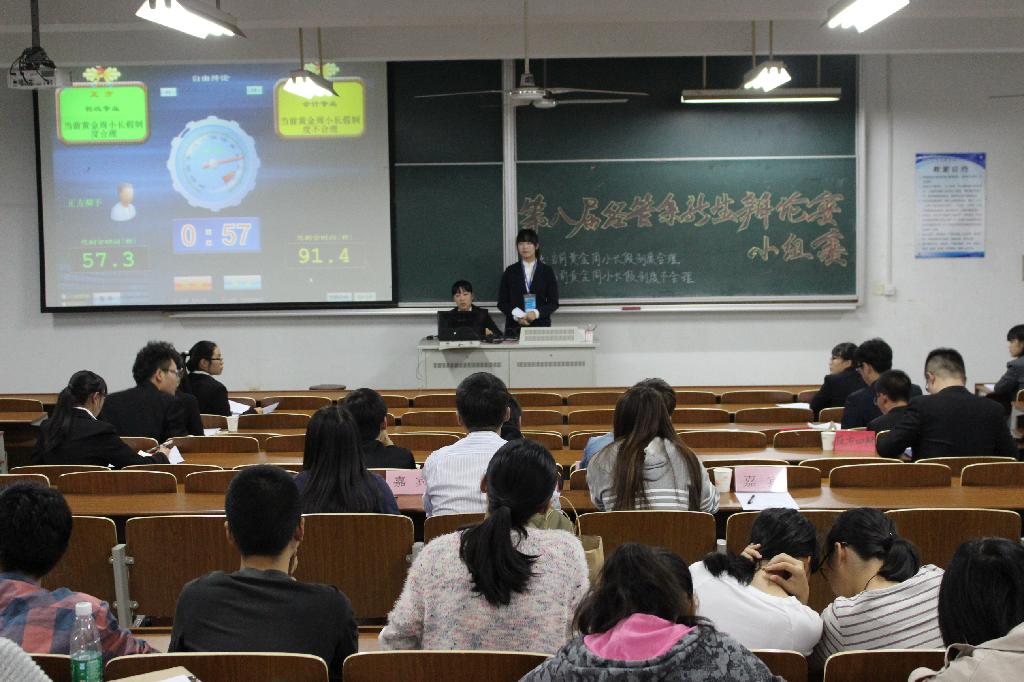 2015年10月25日晚,经济管理系分团委学生会学习实践部举办的第八届经济管理系辩论赛小组赛在文昌院303隆重举行。出席此次辩论赛的嘉宾有:辅导员胡钱胜老师、苏珍晶老师、经济管理系分团委副书记陈杨、秘书长茆大刚、电子工程系现校队主力辩手徐何伟,经济管理系队队长魏文辉、经济管理系现校队主力沈昕。