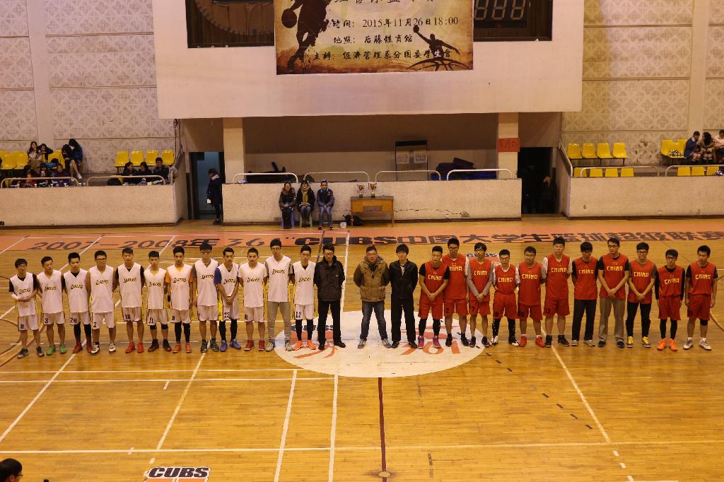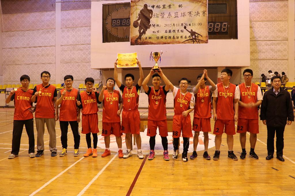 2015年11月26日晚6点,由经济管理系分团委学生会举办的第八届“中裕置业杯”篮球决赛在后藤体育馆隆重开幕,参赛双方是电子商务队与物流管理队。莅临现场的嘉宾有经管系党总支书记黄苏宁老师,分团委书记程希羲老师,辅导员徐小瑛老师、胡钱胜老师以及系主要学生干部。