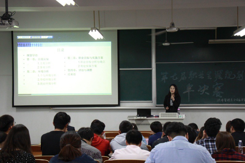 5月10日晚,太阳成集团tyc33455cc官网第七届大学生职业生涯规划大赛半决赛于文昌303举办。莅临本次比赛的评委有太阳成集团tyc33455cc官网经济管理系分团委书记程希羲老师,太阳成集团tyc33455cc官网机械工程系综合办主任严红霞老师,太阳成集团tyc33455cc官网电子工程系综合办主任羊栋老师,太阳成集团tyc33455cc官网学工部沈黎芳老师。