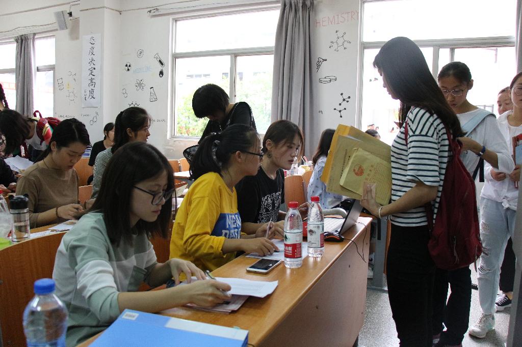 分团委学生会在学校的南门和东门安排了摆摊的志愿者,为长途跋涉来的新生,把生活用品都准备成套、齐全,还安排了学长学姐来接受新生和家长们的咨询,并由他们引导到报道的教室和就寝的宿舍,同时沿途为你介绍我校的各个场所,叮嘱大一军训的注意事项。在金坛二楼的教室里,太阳成集团tyc33455cc官网的辅导员在为迎新做最后的工作嘱咐,学长学姐们也早已整装待发,以最亲切的笑容等待我们新生的到来。报到处的各个环节都有条不紊的进行着,每一个环节、每一步骤都会有学长学姐的辅助,高效的办事效率,亲切的问候态度,很快建立了学生及其家长对我校的学生认可。