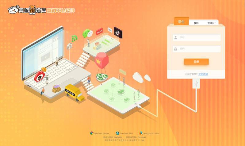 奥派新媒体营销平台软件通过载入微信、微博、抖音、社群等主流营销平台,搭建一个具备图片处理、文案撰写、表单制作、短视频拍摄、活动策划、营销推广、用户管理、数据分析等相关技能训练的平台,通过训练新媒体营销的必备技能,帮助学生成为具备主流新媒体平台推广和运营技巧的新媒体营销人才。