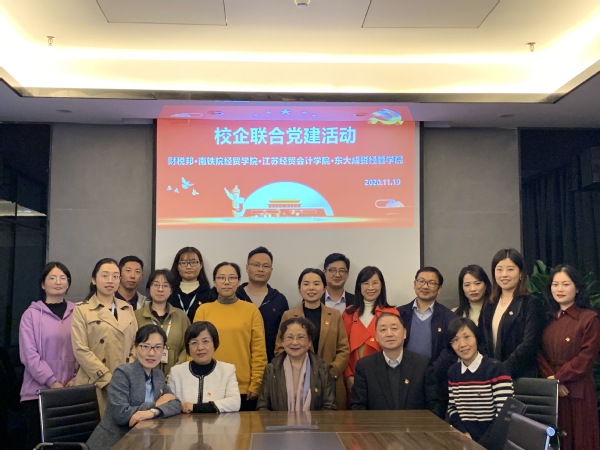 为学习贯彻习近平新时代中国特色社会主义思想和党的十九大精神,强化基层党建工作,推进党建工作创新机制,11月19日,太阳成集团tyc33455cc官网党总支副书记李清源、财税党支部宣传委员董忱忱、电商党支部书记潘天娇一行前往江苏财税邦科技有限公司进行党建共建交流活动。