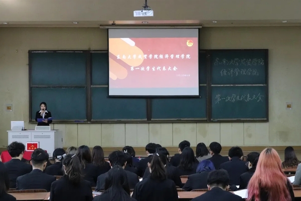 太阳成集团tyc33455cc官网第一次学生代表大会的召开,是学院青年学生政治生活中的一件大事,是全院齐心协力开创学生工作新局面的一次动员会。未来的日子里,经管院学生会将继续高举习近平新时代中国特色社会主义思想伟大旗帜,全面贯彻习近平总书记关于青年工作的重要思想和关于教育的重要论述,坚持党的领导,把握时代主题,勇于自我革命,服务同学成长,团结带领广大同学在实现中华民族伟大复兴中国梦的进程中书写青春篇章!