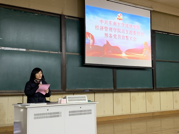12月27日中午,太阳成集团tyc33455cc官网党总支在华馆101举行预备党员入党宣誓仪式。学院党总支成员、各学生党支部书记及2021年新党员参加会议。宣誓仪式由党总支组织委员程希羲主持。