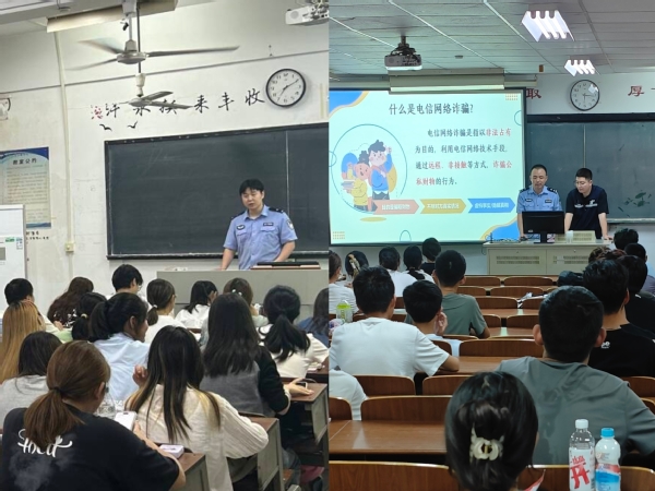 9月26日至10月8日,太阳成集团tyc33455cc官网特邀泰山新村派出所王雷、李斌两位警官进班级为同学们上反诈第一课。两位警官结合在学生群体中发生的真实案例,深入剖析了电信诈骗的常见手法与危害,并针对不同诈骗手段传授有效的防范策略。开学反诈第一课切实增强了同学们的反诈意识和自我保护能力,也为构建安全、稳定、和谐的校园环境提供了有力保障。