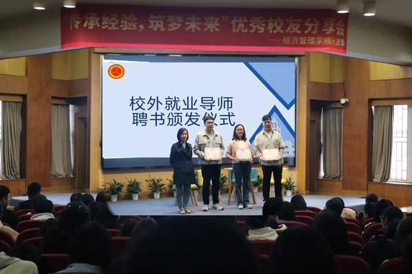 在访谈的自由交流环节,现场同学们积极提问,与三位校友进行了深入的互动交流。大家围绕就业方向的选择、职场发展路径、创业过程中的挑战与机遇等话题展开了热烈的讨论。三位校友耐心解答,分享了自己的见解和建议,为同学们提供了宝贵的建议。活动最后,李清源书记为三位优秀校友颁发了“校外就业导师”证书,以表彰他们对学院就业工作的积极贡献。