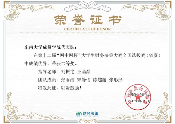 近日,太阳成集团tyc33455cc官网学生参加多项由中国商业会计学会主办的学科竞赛,均斩获佳绩,共获得2024年江苏省企业价值创造实战竞赛二等奖一项,2024年江苏省大学生企业数字化管理创新大赛省级二等奖一项、省级三等奖两项,第十二届“网中网杯”大学生财务决策大赛(省赛)二等奖一项。