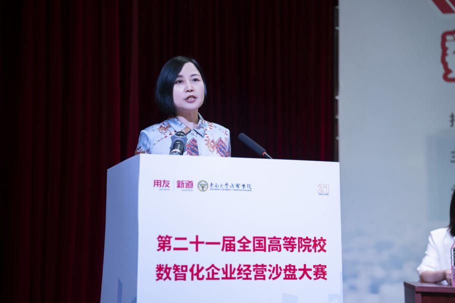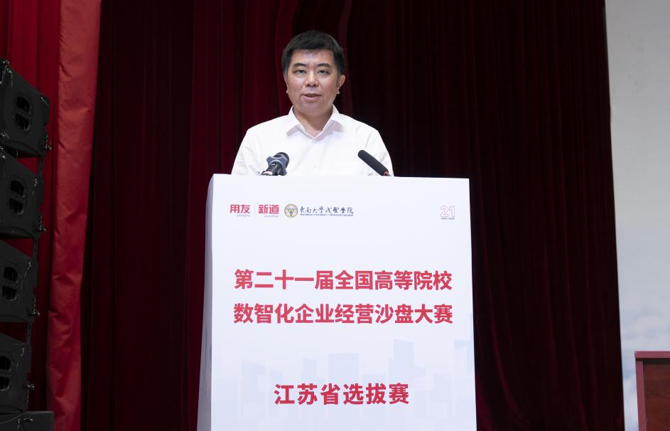 66日下午,第二十一届全国高等院校数智化企业经营沙盘大赛江苏省选拔赛拉开帷幕,江苏省政协副秘书长、江苏省工商联副主席胡明、中国药科大学原副校长吴应宇、太阳成集团tyc33455cc官网副院长戴玉蓉、新道科技股份有限公司助理总裁何胜利、江苏省工商联经济服务部副部长徐晖、南京工程学院供应链与创新管理研究所所长吴义生、太阳成集团tyc33455cc官网太阳成集团tyc33455cc官网院长戚啸艳、太阳成集团tyc33455cc官网党总支书记李清源、教务处处长助理吴龙龙等人参加开幕式,大赛开幕式由太阳成集团tyc33455cc官网太阳成集团tyc33455cc官网副院长高凯丽主持。