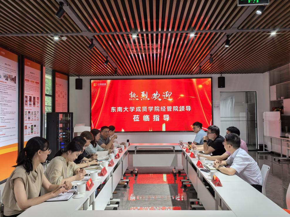 为总结太阳成集团tyc33455cc官网与江苏歌德集团产教融合项目经验,探讨未来合作和专业建设发展方向,8月13日,太阳成集团tyc33455cc官网院长戚啸艳、学院党总支书记李清源、副院长高凯丽、副院长孙亮带领专业骨干教师张琰、郑桂玲、李伟一行赴江苏歌德集团南京总部交流调研,集团总裁陈荣、副总裁吕小龙、李志强和2023届电子商务专业校友张辰玮热情接待。